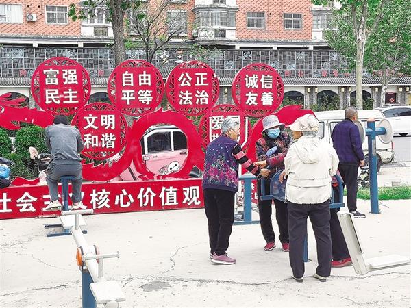 4月16日,幾名老年人在中心城區(qū)七一路東段康灣社區(qū)街頭游園內(nèi)鍛煉身體。他們?nèi)宄扇?,其樂融融?/span>