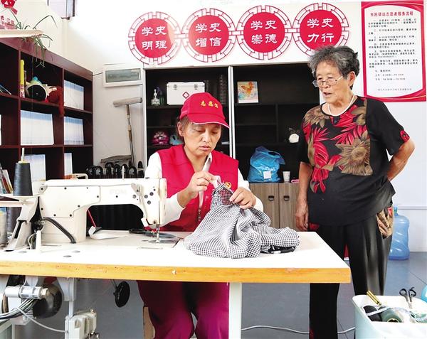 “家里的舊衣服千萬別扔,我給大家修修還能穿。雖然現(xiàn)在咱們的日子越來越好,但也應(yīng)該注意節(jié)省……”8月3日,在中心城區(qū)文明路道德書屋,志愿者趙秋霞一邊忙著為市民縫補(bǔ)衣物,一邊和市民聊天。