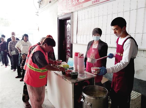 10月10日,重陽節(jié)前夕,清晨第一縷陽光灑向大地,錢廣新已經(jīng)忙碌起來,在他和廚師的精心準(zhǔn)備下,一鍋鍋熱氣騰騰、香氣四溢的綠豆面條端了出來。錢廣新一邊熱情地招呼老人排隊(duì),一邊動(dòng)手盛飯,微笑掛在嘴角,快樂寫在臉上。