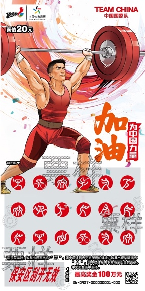 “為中國(guó)力量加油 2024” 即開(kāi)票一共5個(gè)票面場(chǎng)景,分別展示了我們的五大優(yōu)勢(shì)比賽項(xiàng)目:舉重、乒乓球、射擊、跳水、體操。畫(huà)面定格賽場(chǎng)瞬間,彰顯中國(guó)力量,傳遞了中國(guó)運(yùn)動(dòng)健兒堅(jiān)持不懈、勇于拼搏的體育精神,票面右上角依然是熟悉的中國(guó)國(guó)家隊(duì)標(biāo)志,熠熠生輝。