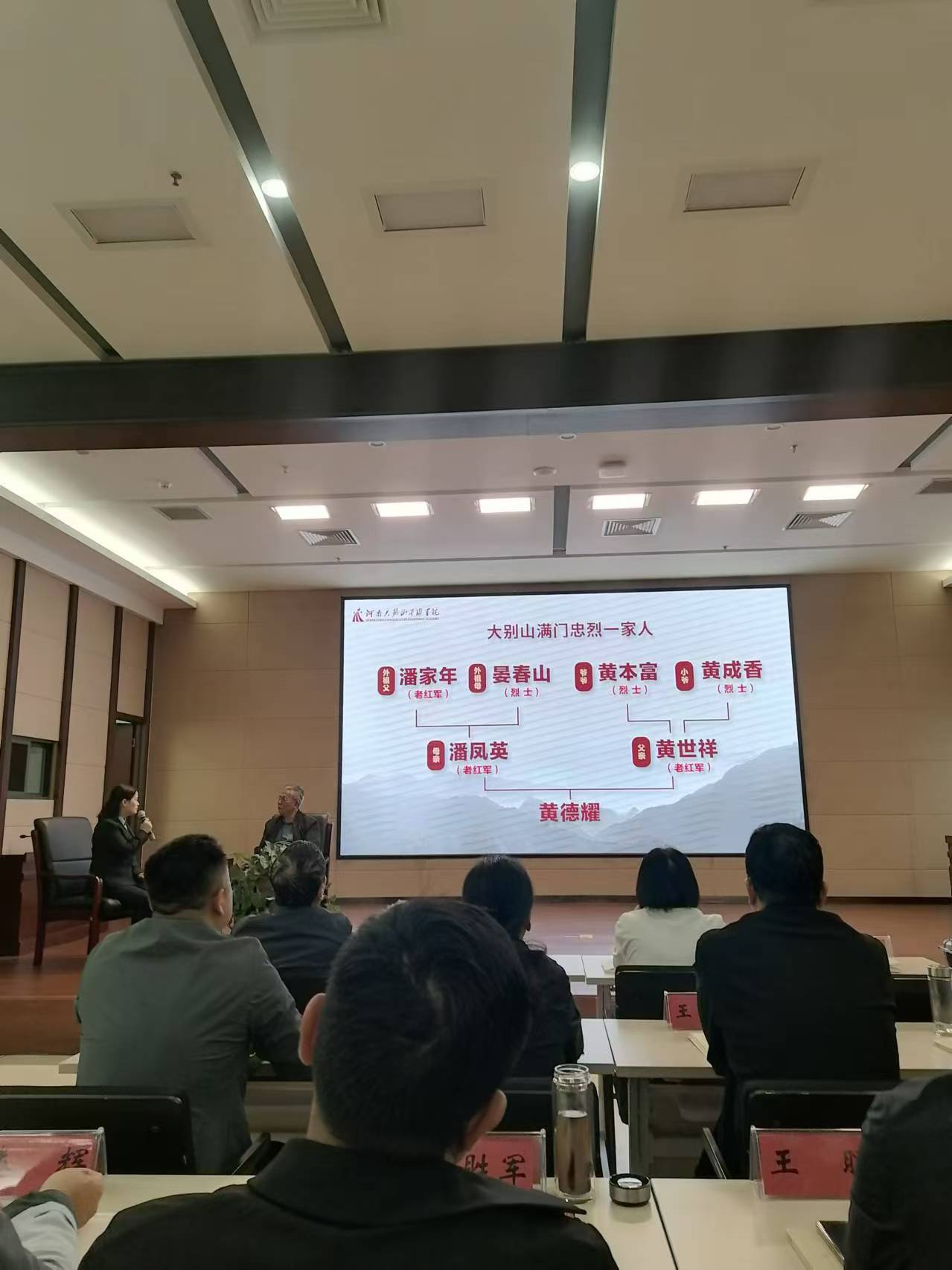 2013年,河南大別山干部學(xué)院成立,了解到黃德耀一家的紅色故事后,學(xué)院決定邀請黃德耀為學(xué)員講述紅色家史,讓更多人了解大別山精神。于是,黃德耀多了一個(gè)特殊身份——大別山干部學(xué)院特聘教師。