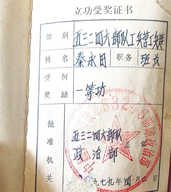 秦永田的立功受獎(jiǎng)證書。