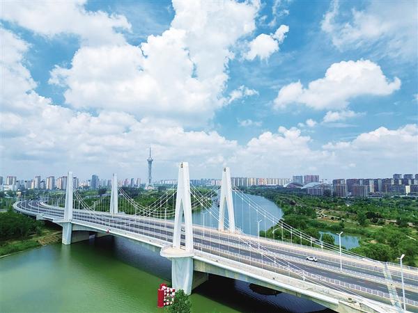 7月25日,藍(lán)天白云映襯下,周口市七一路跨沙潁河大橋以“揚(yáng)帆出?!钡莫?dú)特造型,生動(dòng)展現(xiàn)了這座中原港城的雄心。作為河南“豫貨出海”的橋頭堡,周口正肩負(fù)起港口型國(guó)家物流樞紐承載城市的重任,推動(dòng)“經(jīng)濟(jì)通道”邁向“通道經(jīng)濟(jì)”,實(shí)現(xiàn)高質(zhì)量發(fā)展。