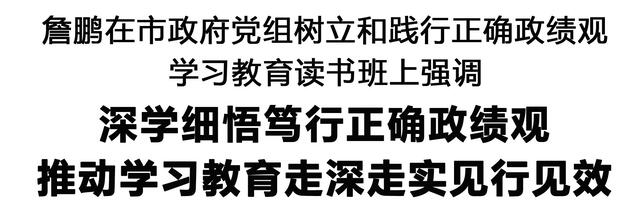 本報(bào)訊(記者 李鳳霞)根據(jù)樹立和踐行正確政績觀學(xué)習(xí)教育工作安排,日前,市政府黨組采取領(lǐng)讀領(lǐng)學(xué)、集中自學(xué)和交流研討相結(jié)合的方式,舉辦樹立和踐行正確政績觀學(xué)習(xí)教育讀書班。市長、市政府黨組書記詹鵬主持并講話,強(qiáng)調(diào)要深刻領(lǐng)會習(xí)近平總書記關(guān)于樹立和踐行正確政績觀的重要論述,增強(qiáng)貫徹落實(shí)的政治自覺、思想自覺和行動(dòng)自覺,推動(dòng)學(xué)習(xí)教育走深走實(shí)、見行見效,確?!笆逦濉遍_好局、起好步。
