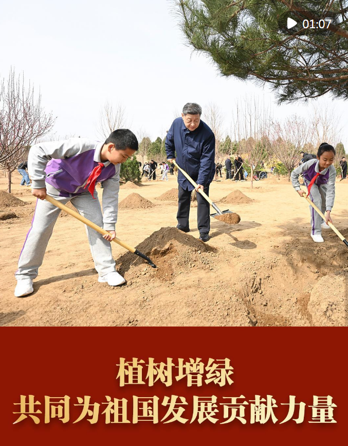 3月30日上午,習近平總書記在參加首都義務植樹活動時強調,良好生態(tài)人人共享,也需要合力共建。要組織動員全社會廣泛參與植樹造林,為山川大地增添錦繡,讓中國式現(xiàn)代化的底色更加亮麗。
