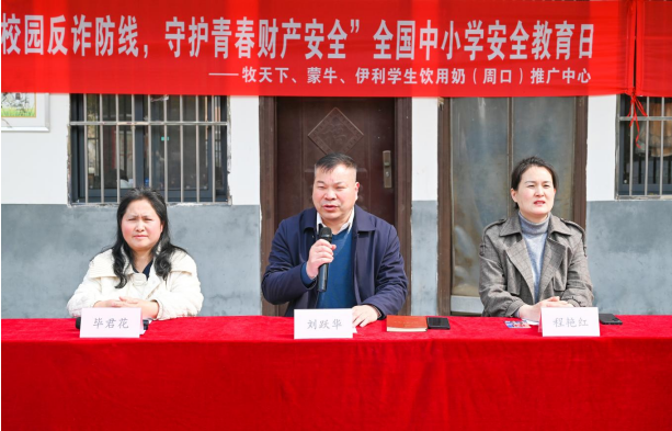 2026年3月31日上午,在全國中小學(xué)安全教育日來臨之際,由牧天下、蒙牛、伊利學(xué)生飲用奶(周口)推廣中心主辦的“筑牢校園反詐防線,守護(hù)青春財(cái)產(chǎn)安全”反詐安全教育主題活動(dòng)在項(xiàng)城市花園辦事處鄭埠口小學(xué)舉行?;▓@辦事處轄區(qū)民警鄺柯柯出席活動(dòng),花園辦事處中心校校長劉躍華,鄭埠口小學(xué)校長程艷紅、副校長畢君花,牧天下、蒙牛、伊利學(xué)生飲用奶(周口)推廣中心副總經(jīng)理何俊濤、(項(xiàng)城)推廣中心市場(chǎng)經(jīng)理劉璐及鄭埠口小學(xué)師生代表參加。