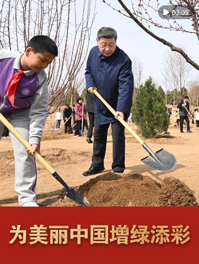 3月30日,習(xí)近平總書記在參加首都義務(wù)植樹(shù)活動(dòng)時(shí),接連種下油松、北京牡丹、榆葉梅、杜仲、元寶楓等多棵樹(shù)苗。不同樹(shù)種繪就四季斑斕,為山川大地增添錦繡。