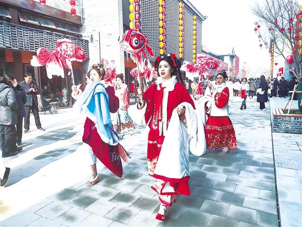 翠袖紅裙、直襟長袍……身著漢服的演員,手持魚燈,巡游關(guān)帝老街,伴隨著樂曲翩翩起舞,成為一道靚麗的風景線。[詳細]