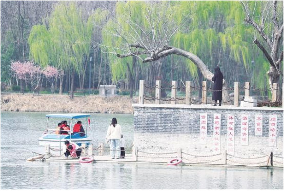 3月13日,初春時(shí)節(jié),淮陽(yáng)弦歌臺(tái)九曲橋畔,柳枝抽出嫩綠新芽,輕拂亭臺(tái)。碧水環(huán)繞,古亭雅致,游人漫步橋上,盡享湖光春色,盡顯古城春日的溫婉與生機(jī)。