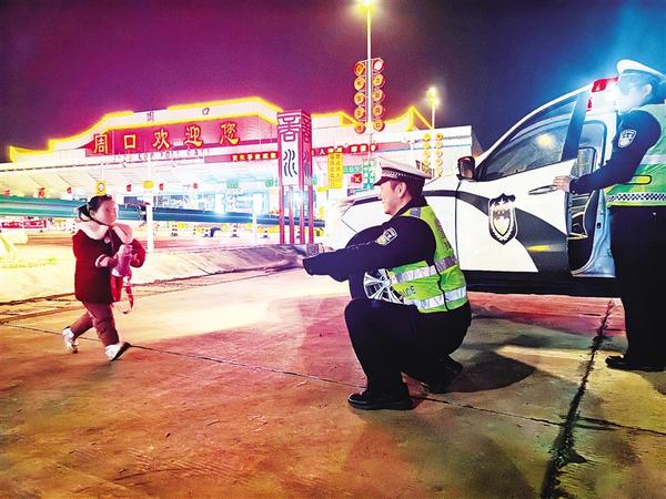 萬家團圓共慶佳節(jié),警燈閃爍守護平安。2月16日除夕之夜,在寧洛高速公路周口段巡邏任務(wù)結(jié)束之際,周口市公安局高速公路交通警察支隊一隊民警趙軒,迎來了前來探望拜年的女兒。