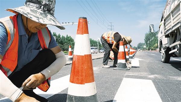 連日來(lái),西華縣華興大道、中原路升級(jí)改造項(xiàng)目建設(shè)如火如荼。項(xiàng)目完工后,將進(jìn)一步提升道路通行能力,助力城市“顏值”與品質(zhì)雙升級(jí)。圖為工人在施工現(xiàn)場(chǎng)固定反光錐。