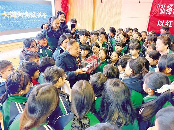 近日,退役軍人張千在商水縣第一高級(jí)中學(xué)的講臺(tái)上為學(xué)生講述人民海軍從無到有、由弱變強(qiáng)的壯闊征程。