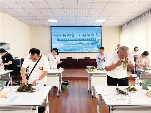 為豐富職工精神文化生活,營造文明和諧、健康向上的氛圍,端午節(jié)前夕,商水縣總工會、縣新時代文明實踐服務(wù)中心聯(lián)合舉辦“同享端午、共品粽香”主題活動。圖為選手進行吃粽子比賽。