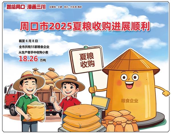 夏收期間,周口市多措并舉保障糧食收購工作。全市統(tǒng)籌30個政策性收儲庫點,為夏糧收購騰出14.8億斤倉容;利用市、縣、鄉(xiāng)、村四級儲備糧輪換機制,新增6億斤倉容。