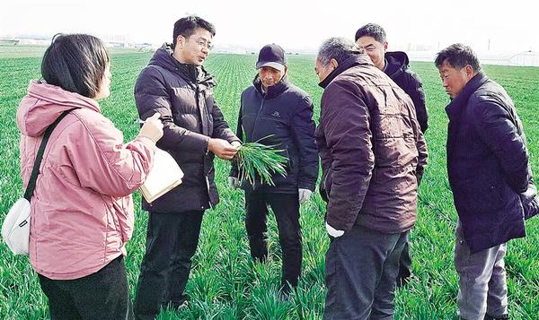 隨著氣溫升高,我市1100多萬畝小麥進入起身拔節(jié)期,各級農業(yè)技術人員送科技到田間,指導群眾開展以“促弱、控旺、防凍、防倒、防病蟲”為重點的春季麥田管理。