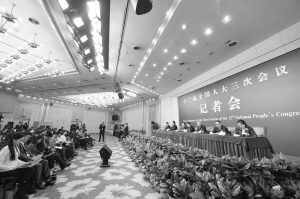據(jù)新華社北京3月10日電 十二屆全國人大三次會議新聞中心10日下午邀請柳斌杰等5名全國人大專門委員會負責人集體“亮相”梅地亞中心,接受中外記者提問。