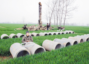 ?、?月23日,扶溝縣大李莊鄉(xiāng)常崗村村民正在田間打井。入春以來,大李莊鄉(xiāng)利用爭取到的資金,大力實施基本農(nóng)田灌溉工程,切實解決部分農(nóng)田地塊的澆灌難題,為奪取夏糧豐收奠定扎實基礎(chǔ)。