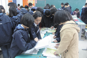 該校將課堂名字定為“求真大課堂”,以“真”字作為學(xué)校一切教育教學(xué)和管理的衡量標(biāo)準(zhǔn)。朱貴華說(shuō),求真就是要真教、真學(xué)、真嚴(yán)、真愛、真實(shí)、真會(huì)。為提高課堂教學(xué)效果,該??偨Y(jié)出一套獨(dú)特的課堂教學(xué)方法——“七音和鳴”。分管教學(xué)工作的副校長(zhǎng)徐其運(yùn)用“1234567”,即哆來(lái)咪發(fā)唆拉西”來(lái)詮釋“七音和鳴”法。“1”就是一個(gè)學(xué)習(xí)目標(biāo);“2”就是提前兩分鐘進(jìn)班,布置2個(gè)任務(wù)(出示目標(biāo)、檢查學(xué)情);“3”就是準(zhǔn)備3個(gè)本子,即學(xué)情檢效本、跟蹤本、糾錯(cuò)本;“4”是4個(gè)維度考評(píng),即高速度、準(zhǔn)確度、干凈度、參與度;“5”是5個(gè)跟蹤,即節(jié)跟蹤、日跟蹤、周跟蹤、月跟蹤、學(xué)期跟蹤,堅(jiān)持“抓緊跟蹤不放松、我在文昌必成功”的教育信念;“6”是6個(gè)環(huán)節(jié),即激情導(dǎo)入、自研自探、合作探究、展示質(zhì)疑、師生點(diǎn)評(píng)、當(dāng)堂檢測(cè);“7”是7個(gè)評(píng)價(jià),即教師的教案、學(xué)生的學(xué)案、練案、觀課記錄的每周業(yè)務(wù)評(píng)價(jià)及對(duì)學(xué)生的即時(shí)性、激勵(lì)性、長(zhǎng)效性評(píng)價(jià)。