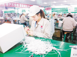 昨日,在三星手機(jī)耳機(jī)供應(yīng)商日立亞電子淮陽有限公司生產(chǎn)車間,工人們正在生產(chǎn)線上忙碌著?;搓柨h近年來積極實(shí)施“工業(yè)強(qiáng)縣、旅游突破、城鄉(xiāng)統(tǒng)籌、四化同步”發(fā)展戰(zhàn)略,不斷調(diào)整工業(yè)產(chǎn)業(yè)結(jié)構(gòu),增加企業(yè)科技含量,以提升產(chǎn)品質(zhì)量和市場競爭力,促進(jìn)經(jīng)濟(jì)轉(zhuǎn)型升級(jí)。(記者 侯俊豫 攝)