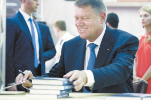 5月23日,羅馬尼亞總統(tǒng)約翰尼斯在首都布加勒斯特舉行的新書發(fā)行儀式上為讀者簽名。當(dāng)天,羅馬尼亞總統(tǒng)約翰尼斯的新著《第一步》在第10屆國(guó)際書展舉行發(fā)行儀式。