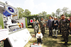 尼泊爾軍方25日在位于加德滿都的軍隊(duì)醫(yī)院大草坪舉行隆重交接儀式,感謝中國(guó)把兩套總價(jià)值5900萬元人民幣的野戰(zhàn)醫(yī)院設(shè)備贈(zèng)予尼軍。