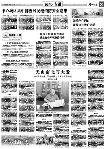 當(dāng)記者在北京見到張柱堂時(shí),他的容貌和記者的想象差別不大。從外表看,他就是位普通而慈祥的老人,見了誰(shuí)都笑呵呵的,即便在新疆生活了50年,張口還是地道流利的家鄉(xiāng)話。見到家鄉(xiāng)人,張柱堂激動(dòng)的心情溢于言表,他拿出自己做的《周口日?qǐng)?bào)》剪貼本讓我們翻閱,談起家鄉(xiāng)近年來(lái)取得的可喜變化,他都能一件一件清晰準(zhǔn)確地道來(lái)。此刻我方知,在老人平靜的外表下,蘊(yùn)藏著的是怎樣熾熱的家鄉(xiāng)情。
