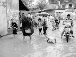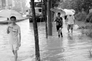 淮陽城區(qū)部分路段積水成災 晚報記者 杜欣 攝