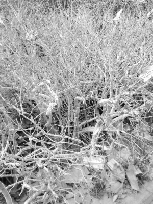 記者采訪(fǎng)中發(fā)現(xiàn),這里的綠化帶植物成片成片地枯死,從干枯的程度上看,應(yīng)該枯死一段時(shí)間了,而這些植物的枝條上都裹著一層白色物體。